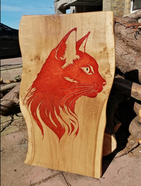 The design of the cat includes very fine details, look at a close up of the whiskers, they are thin slivers of oak.
